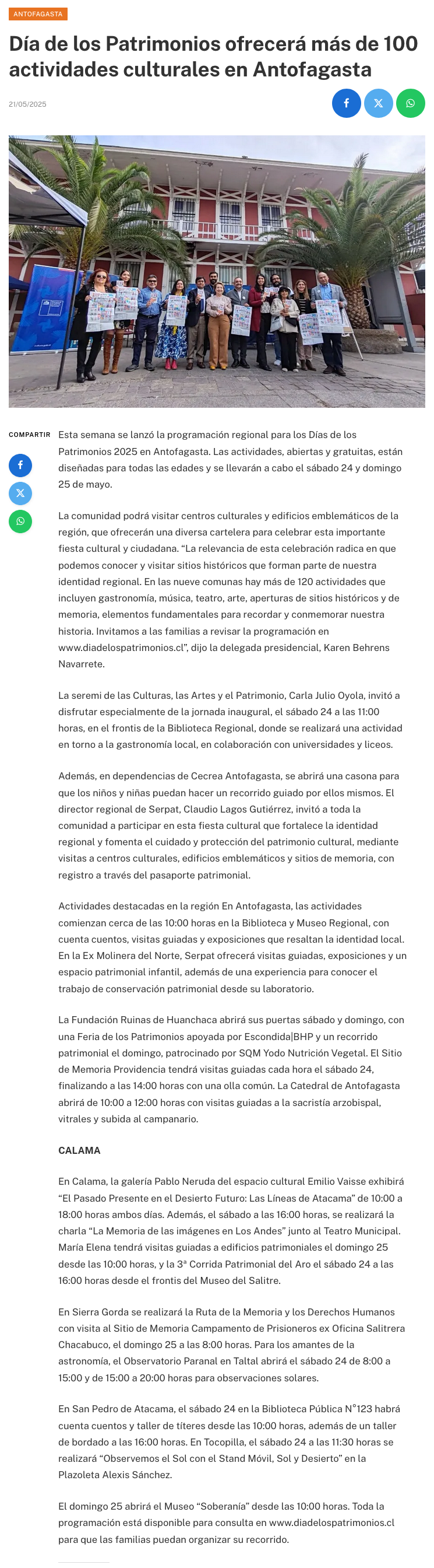 Día de los Patrimonios ofrecerá más de 100 actividades culturales en Antofagasta - (soyantofagasta)
