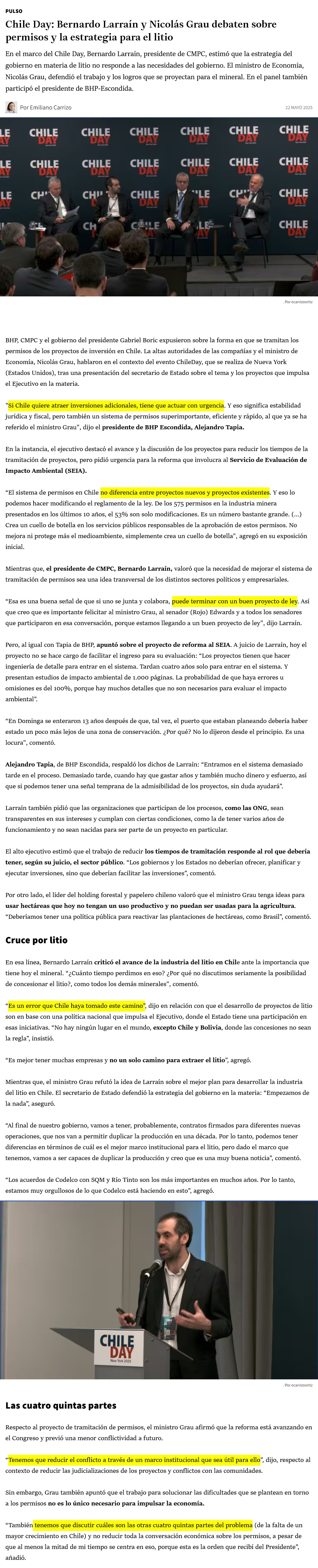 Debate en Chile Day: estrategia de litio y permisos en agenda - (redimin)