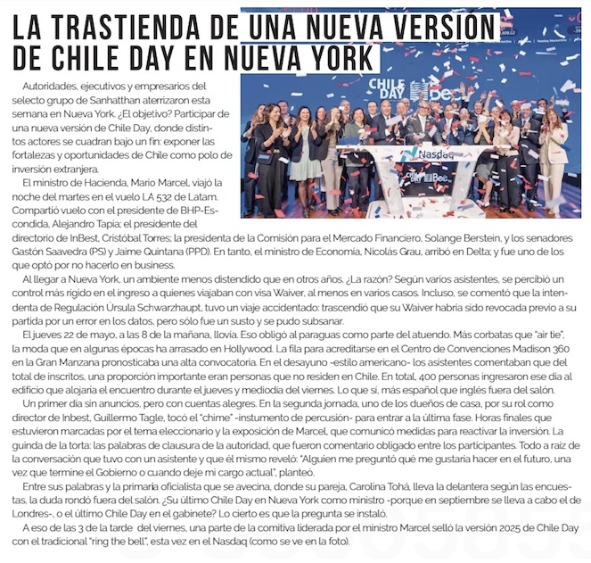 Ministro Marcel parte visita a Nueva York con reunión con el Council of the Americas en el marco de ChileDay - (Estrategia)