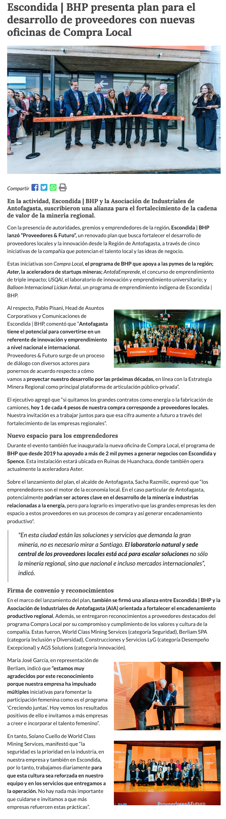 Escondida | BHP presenta plan para el desarrollo de proveedores con nuevas oficinas de Compra Local - (mch.cl)