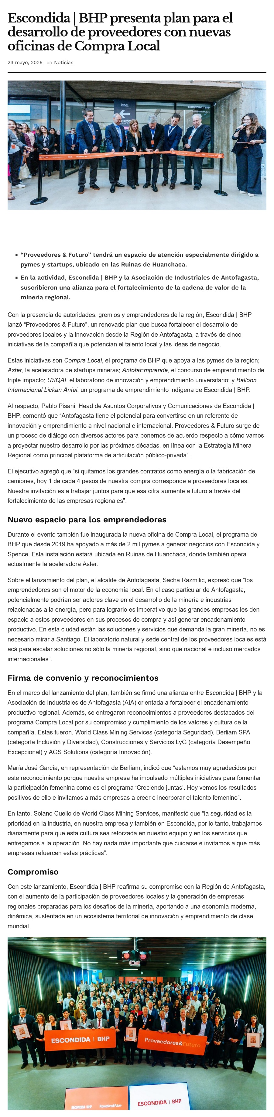 Escondida | BHP presenta plan para el desarrollo de proveedores con nuevas oficinas de Compra Local - (mch.cl)