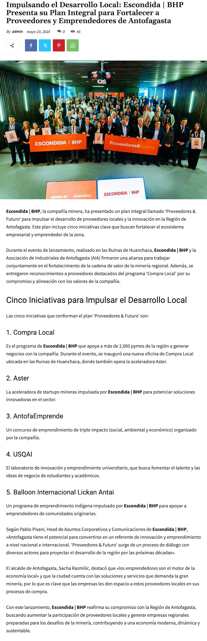 Escondida | BHP presentó plan para el desarrollo de proveedores antofagastinos - (revistacrisol.cl)