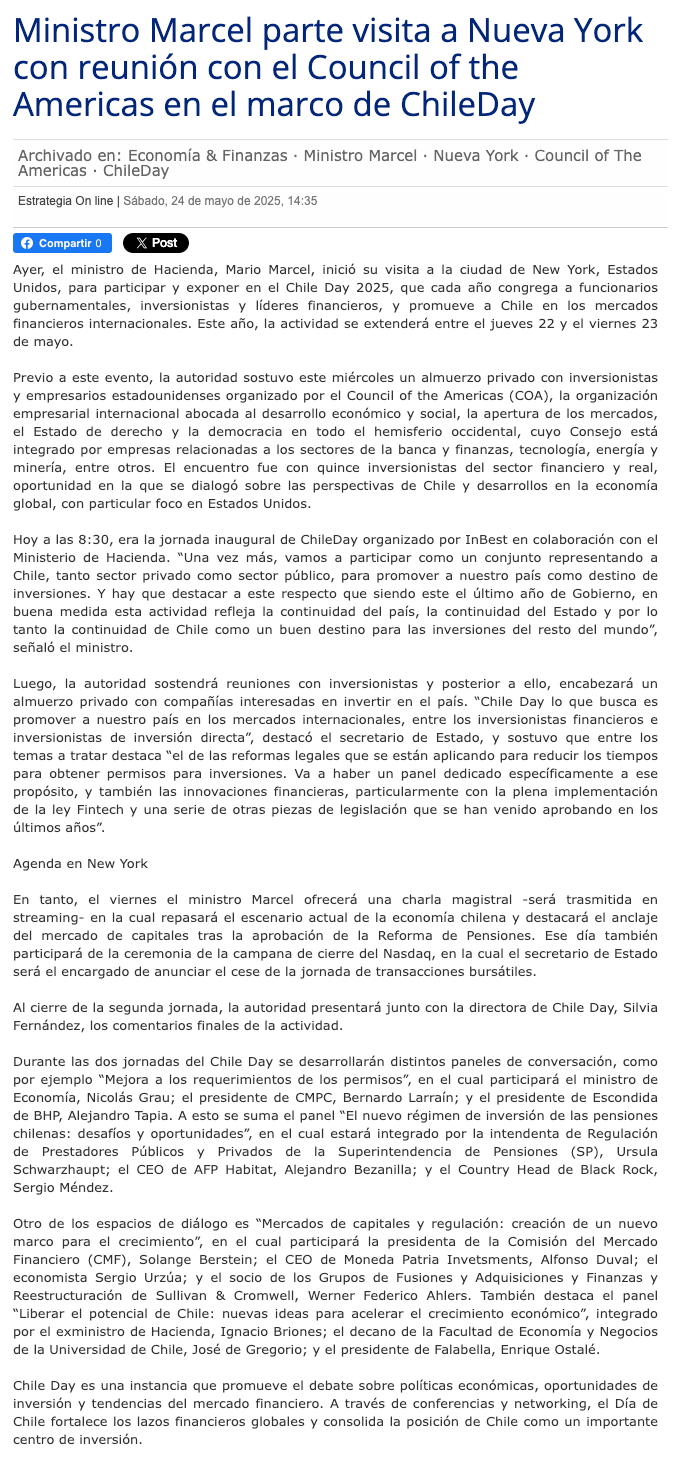 La trastienda de una nueva versión de Chile Day en Nueva York - (Diario Financiero)