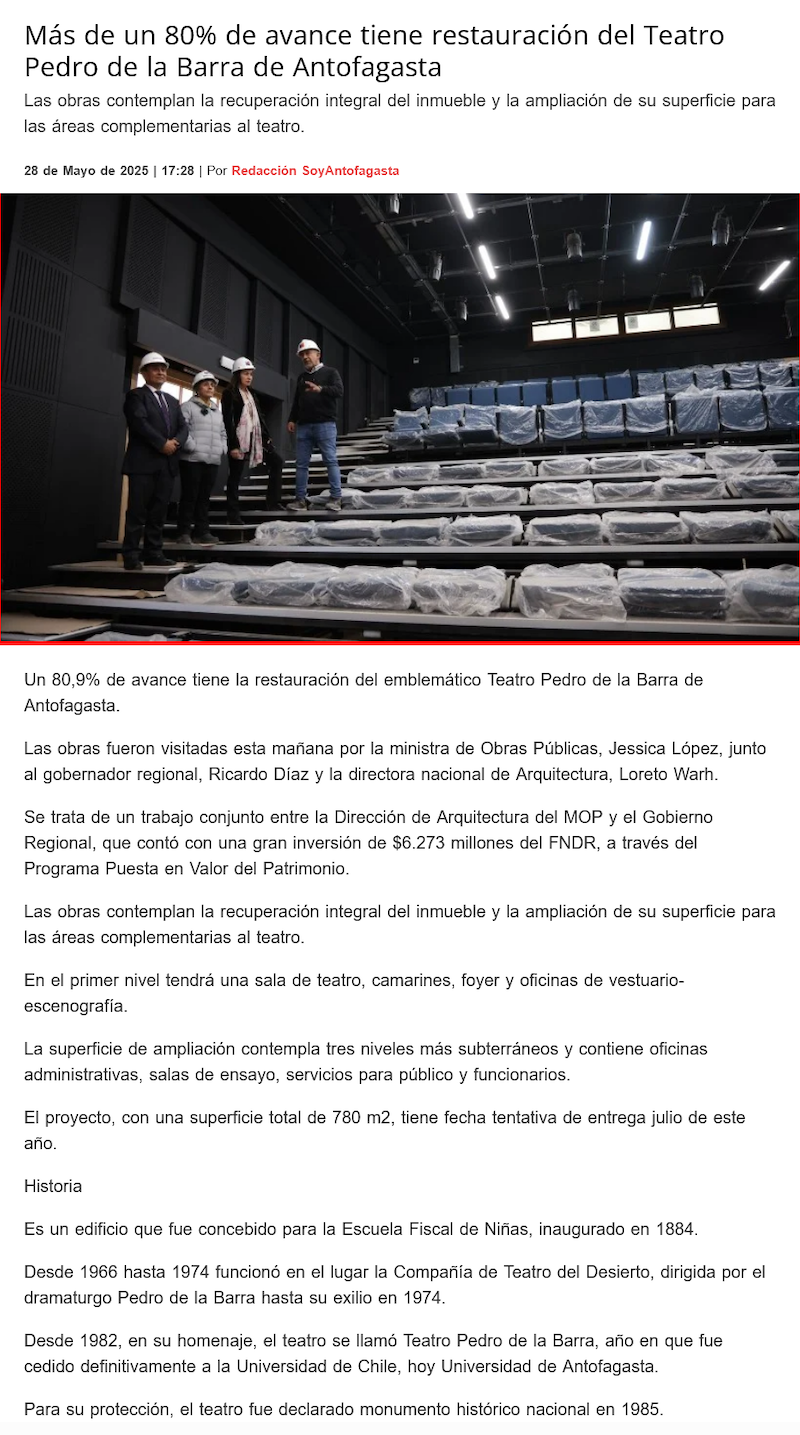 Avanzan obras en el teatro Pedro de la Barra - (La Estrella)