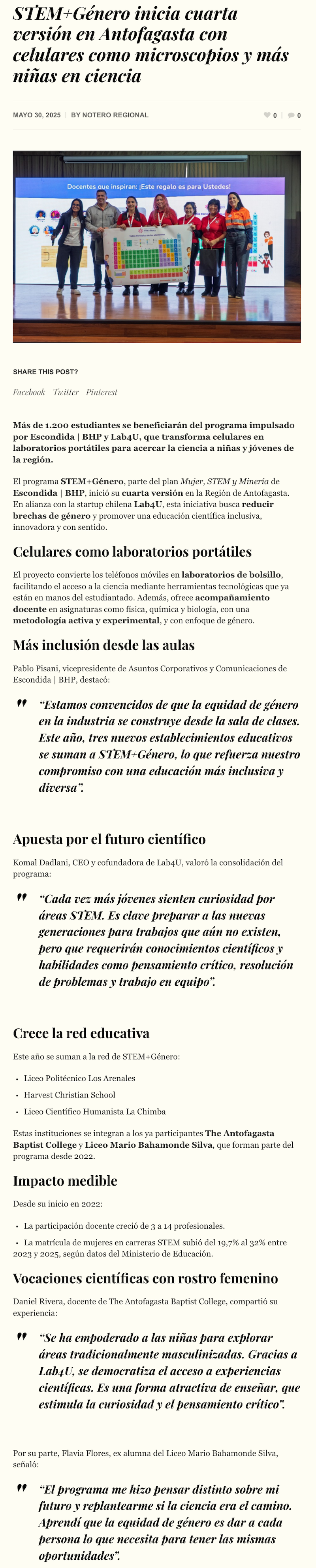 STEM+Género inicia 4° versión con celulares como microscopios y más niñas en ciencia - (norteonline.cl)