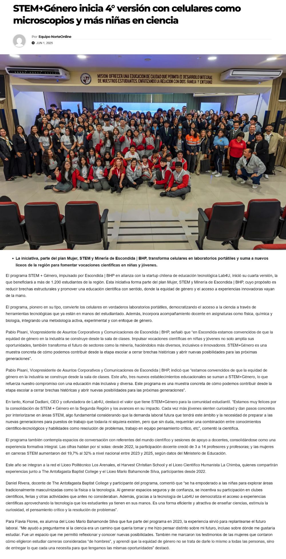 STEM+Género inicia cuarta versión en Antofagasta con celulares como microscopios y más niñas en ciencia - (alertanoticiastemuco.cl)
