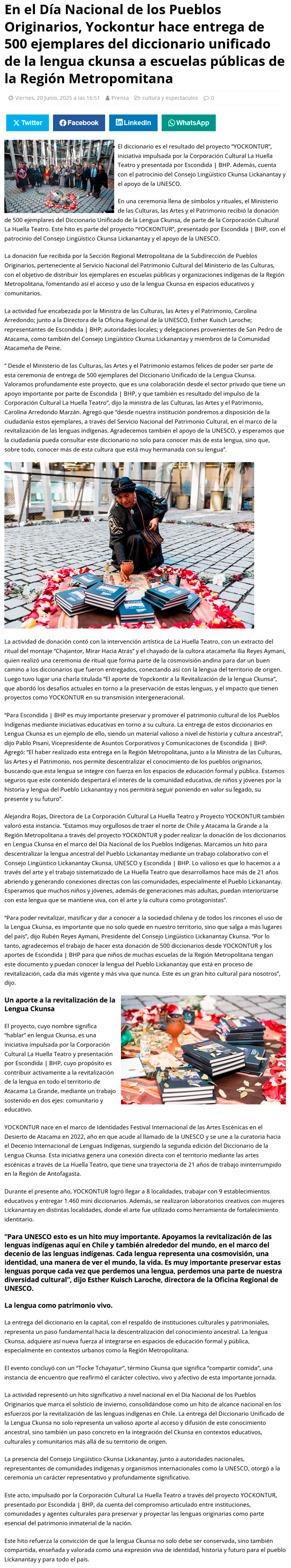 En el Día Nacional de los Pueblos Originarios, Yockontur hace entrega de 500 ejemplares del diccionario unificado de la lengua ckunsa a escuelas públicas de la Región Metropolitana - (regionesnoticias.cl)