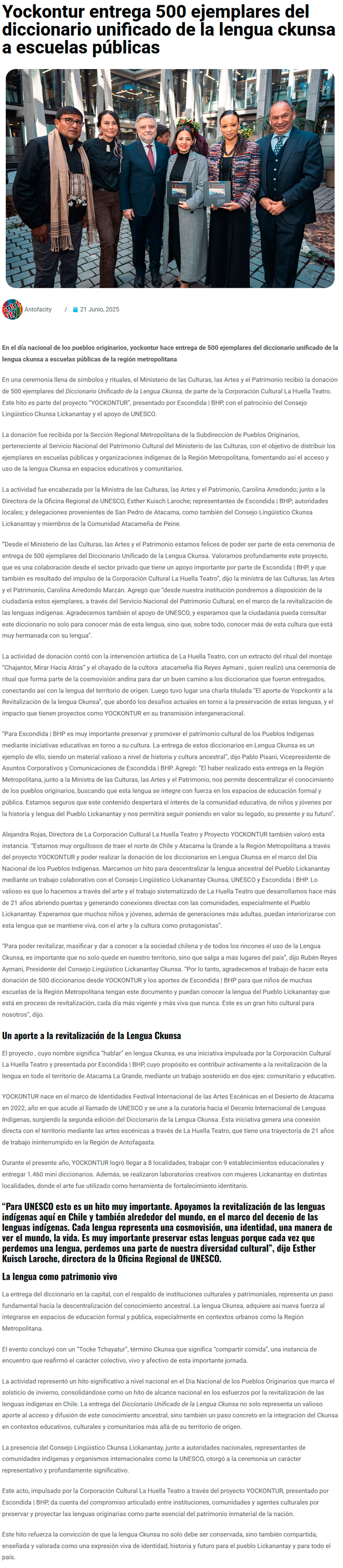 En el Día Nacional de los Pueblos Originarios, Yockontur hace entrega de 500 ejemplares del diccionario unificado de la lengua ckunsa a escuelas públicas de la Región Metropolitana - (antofagastanoticias)