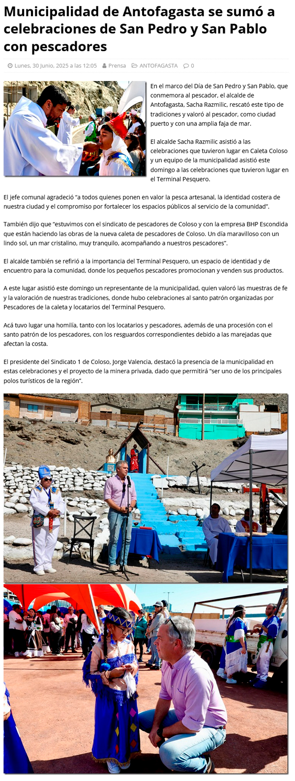 Municipalidad de Antofagasta se sumó a celebraciones de San Pedro y San Pablo con pescadores - (antofagastanoticias)