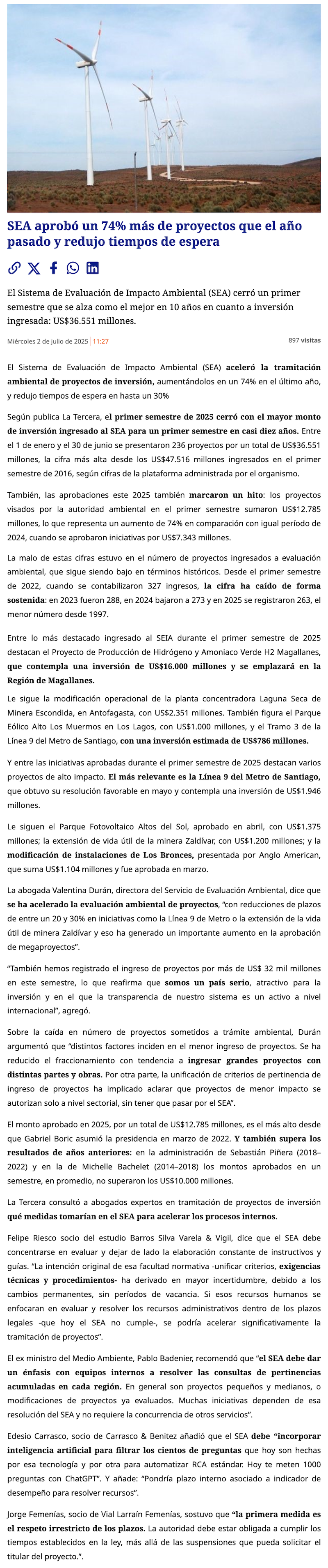 SEA aprobó un 74% más de proyectos que en 2024 y redujo tiempos de tramitación hasta un 30% - (radio.uchile online)