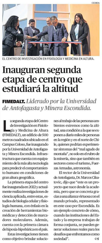 Universidad de Antofagasta y Escondida | BHP inauguran segunda etapa de centro que estudiará efectos de altitud en las personas - (madero.cl)