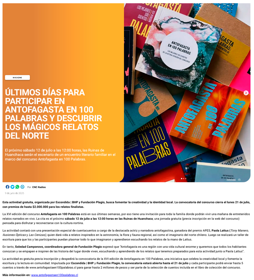 Últimos días para participar en Antofagasta en 100 Palabras y descubrir los mágicos relatos del norte - (fmplus.cl)