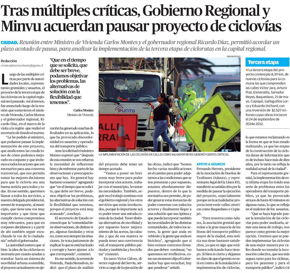 Ministro Montes anuncia que realizarán ajustes con la comunidad al proyecto de ciclovías en Antofagasta - (timeline)