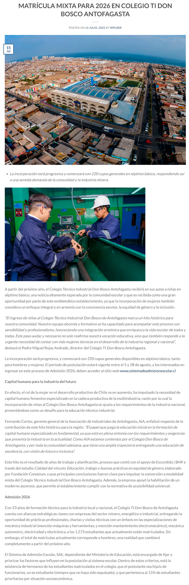 Colegio Don Bosco de Antofagasta contará con matrícula mixta a partir de 2026 - (timeline)