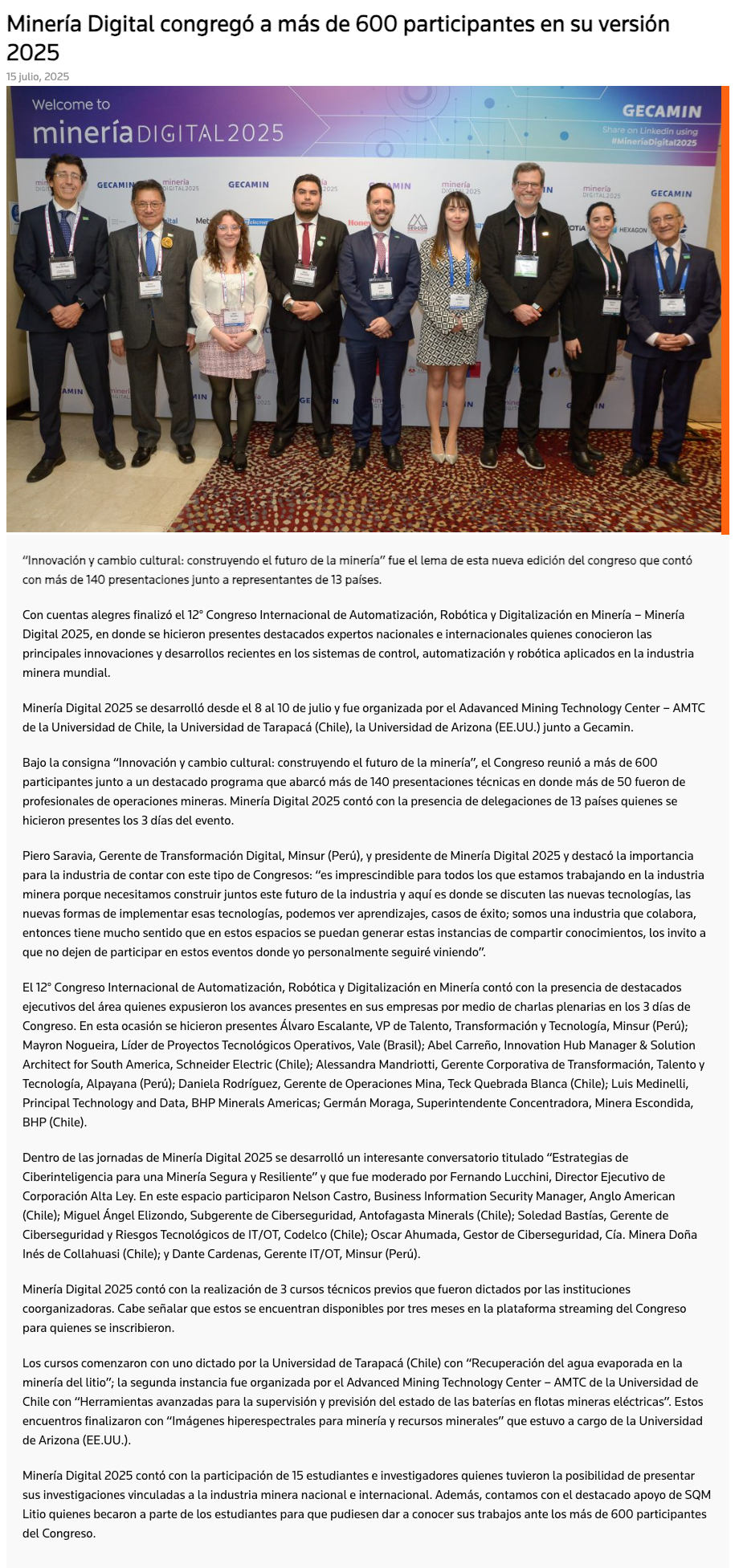 Minería Digital congregó a más de 600 participantes en su versión 2025 - (portalinnova.cl)