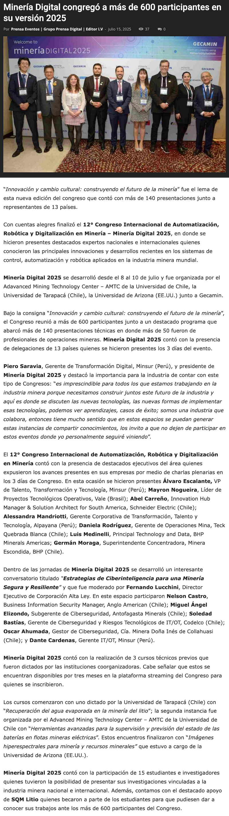 Minería Digital congregó a más de 600 participantes en su versión 2025 - (portalinnova.cl)