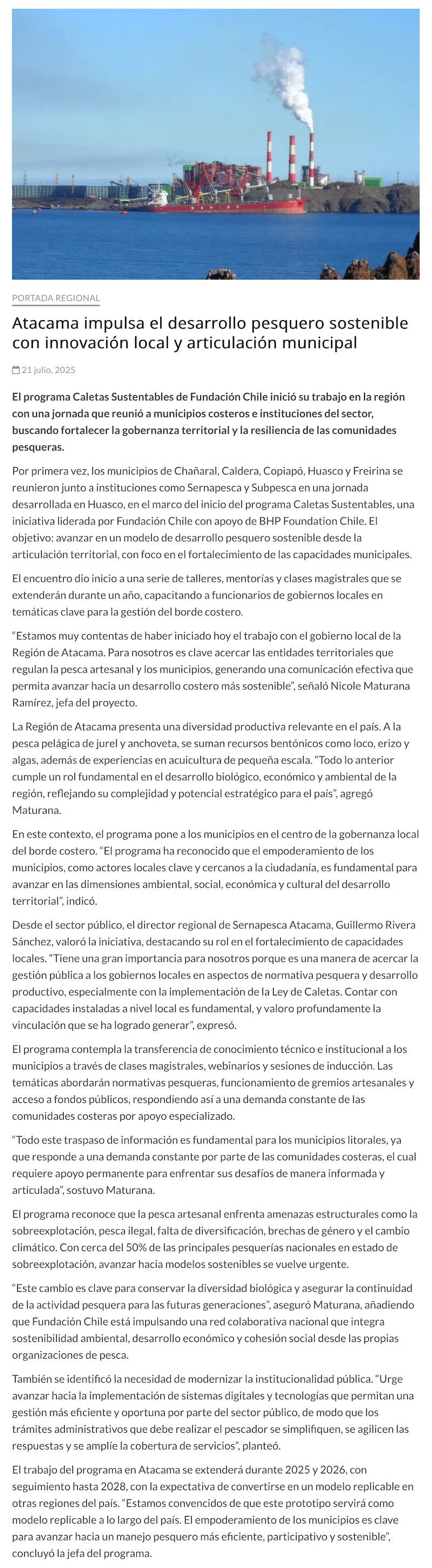 Primera jornada de trabajo entre los municipios costeros y los servicios públicos de pesca para impulsar un desarrollo pesquero sostenible en la Región de Atacama - (tierramarillano.cl)