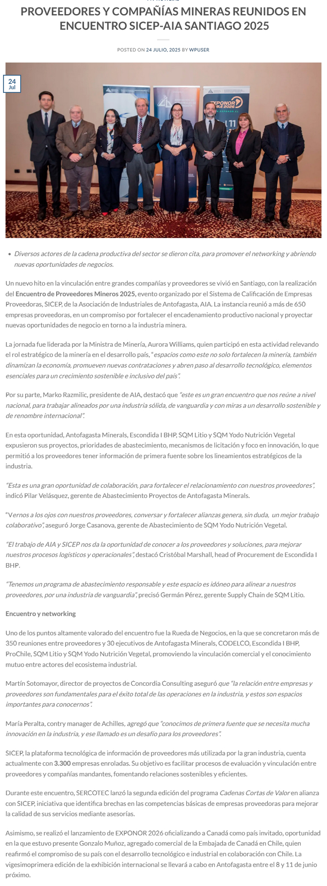 Proveedores y compañías mineras reunidas en Encuentro SICEP-AIA Santiago 2025 - (reporteminero)