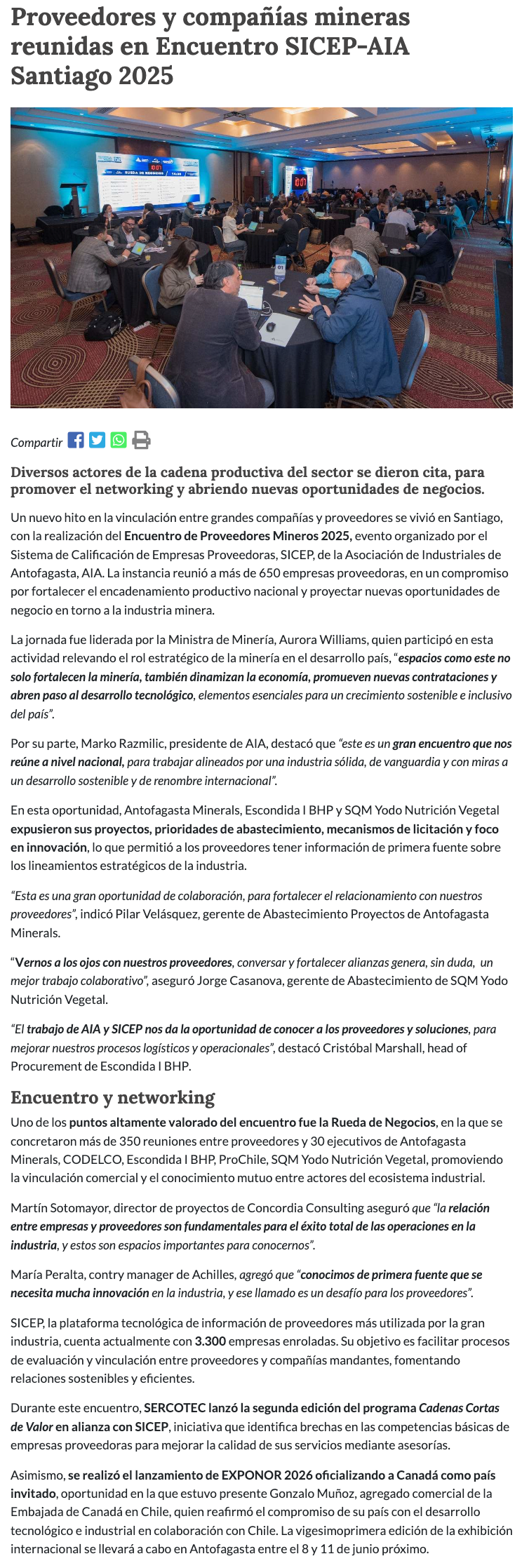 Proveedores y compañías mineras reunidos en encuentro SICEP-AIA Santiago 2025 - (mvcomunicaciones.cl)