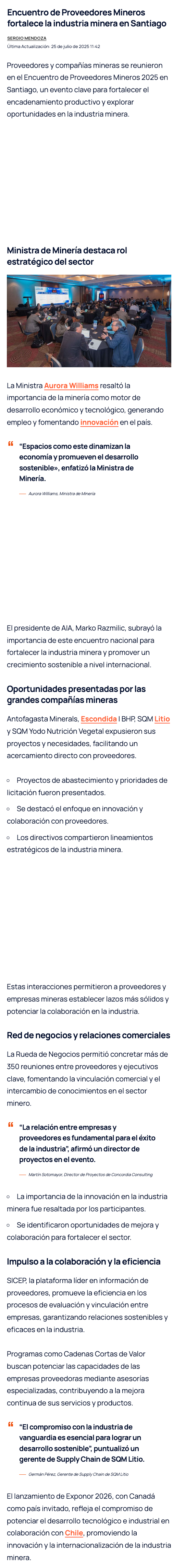 Proveedores y compañías mineras se reunieron en el encuentro SICEP-AIA Santiago 2025 - (timeline)