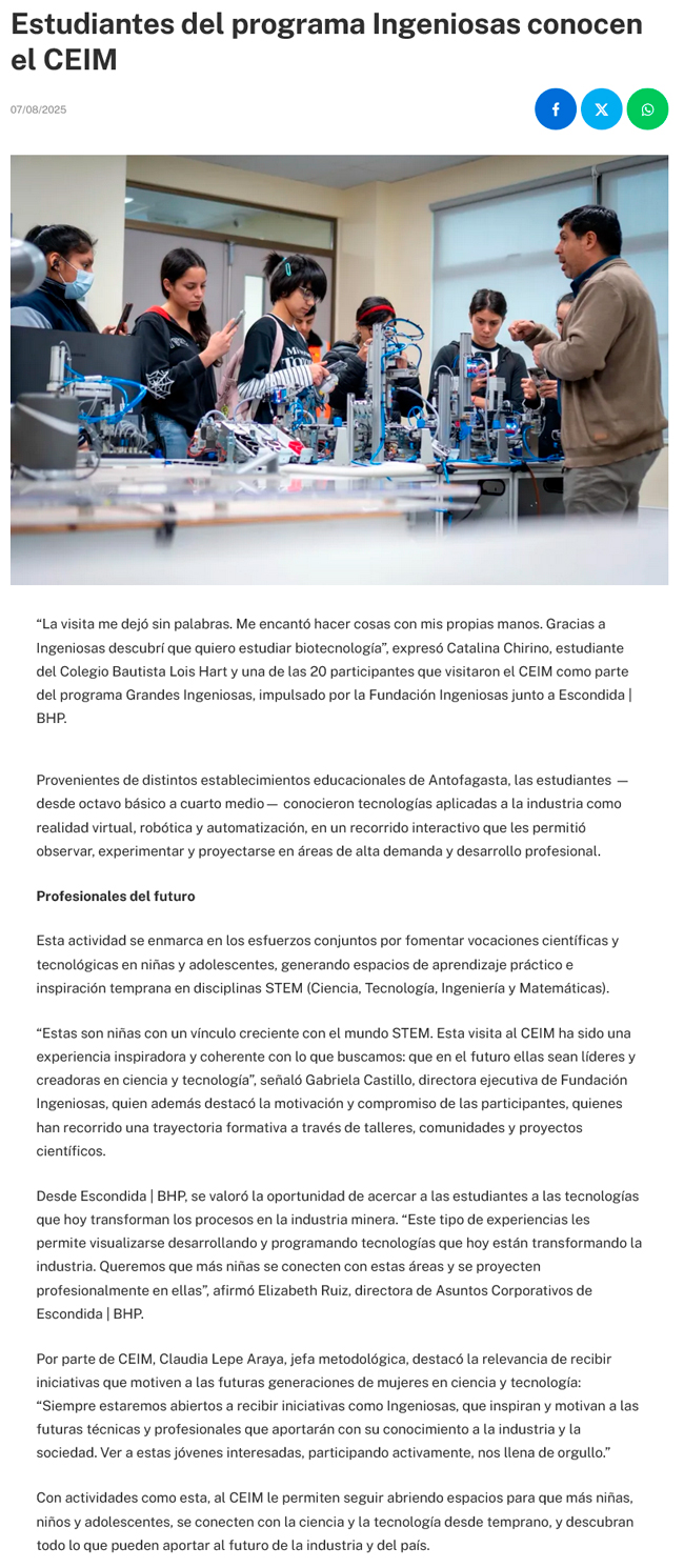 Estudiantes del programa Ingeniosas conocen el CEIM - (reporteminero)