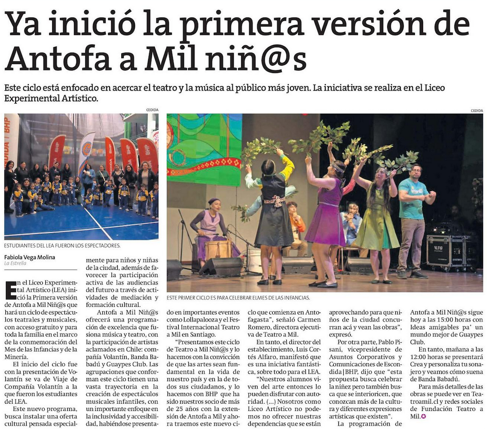 Arrancó primera edición de Antof a Mil Niñ@s - (El Mercurio de Antofagasta)
