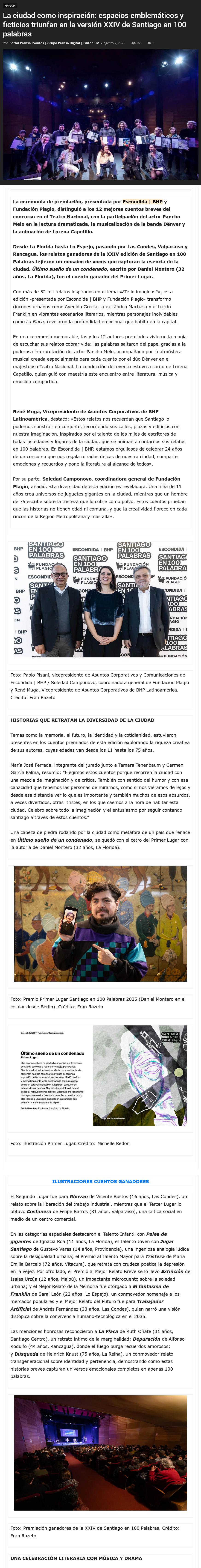 Ciudad como inspiración:Espacios emblemáticos y ficticios ganan edición 24°de Santiago en 100 Palabras - (biobiochile online)