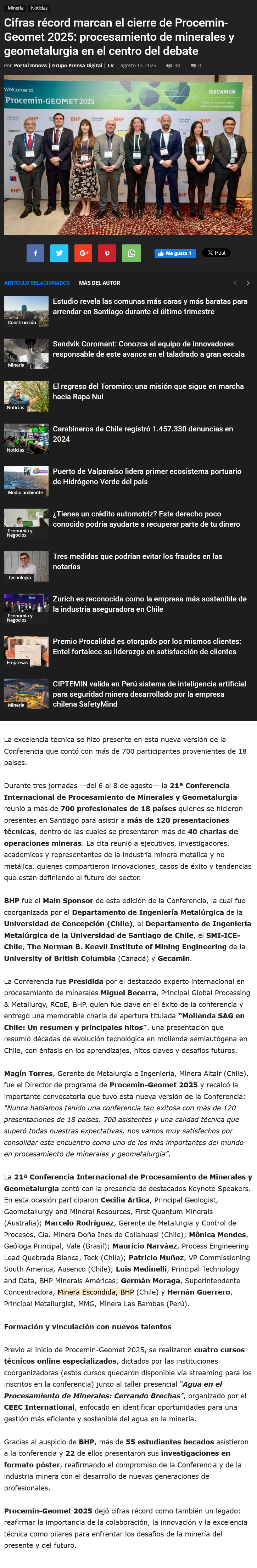 Cifras récord marcan el cierre de Procemin-Geomet 2025: procesamiento de minerales y geometalurgia en el centro del debate - (mvcomunicaciones.cl)