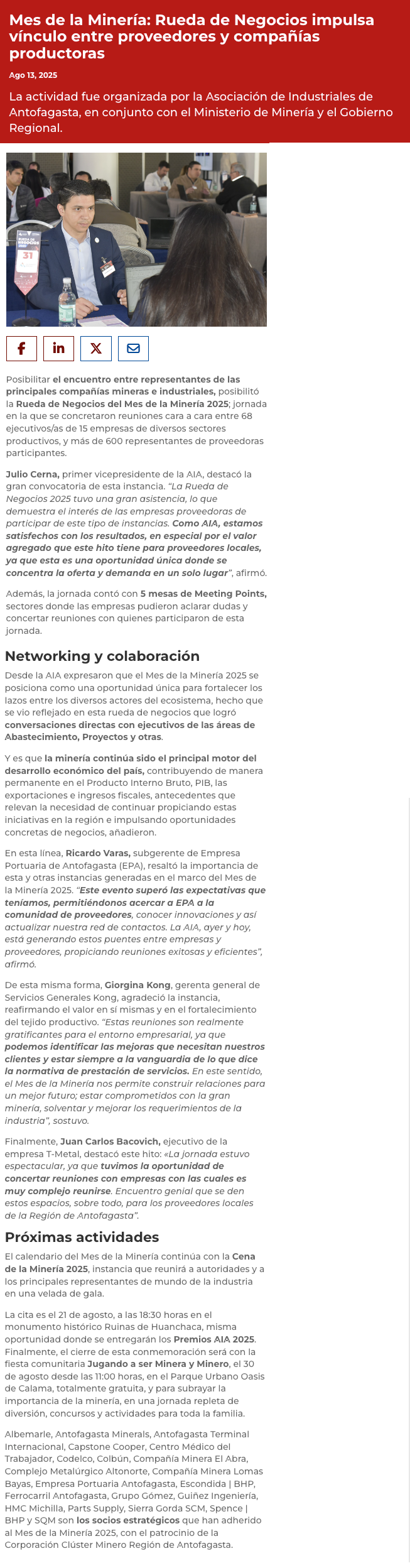 Rueda de negocios Mes de la Minería: proveedores más conectados con compañías mineras - (reporteminero)