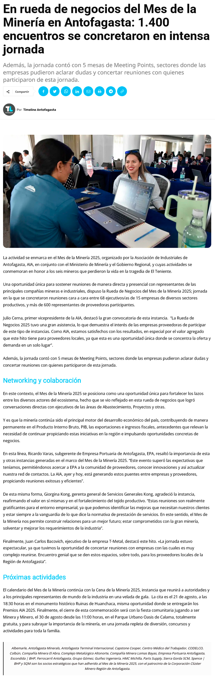 1.400 encuentros en la Rueda de Negocios del Mes de la Minería 2025 - (soyantofagasta)