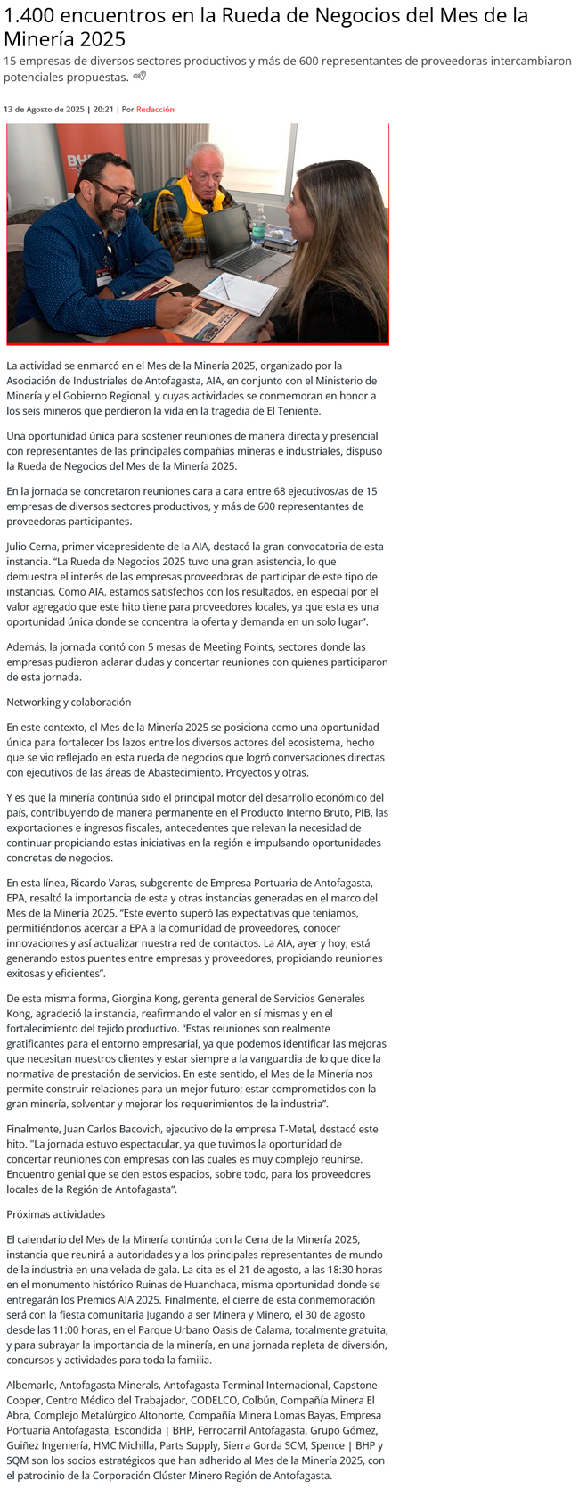Proveedores más conectados con compañías mineras, en rueda de negocios mes de la minería - (mvcomunicaciones.cl)