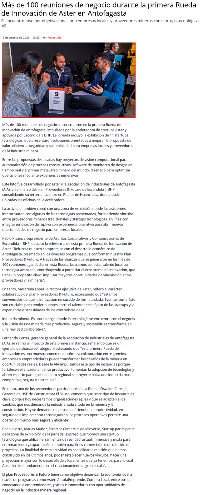 Realizan “Rueda de Innovación” de Aster en Antofagasta - (La Estrella)