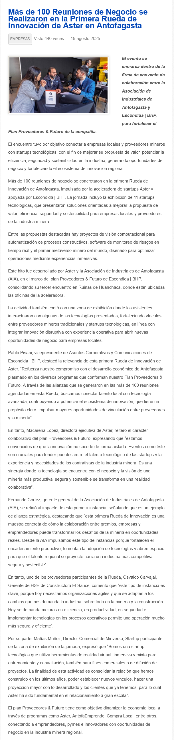 Primera Rueda de Innovación facilita más de un centenar de reuniones de negocios - (El Mercurio de Antofagasta)