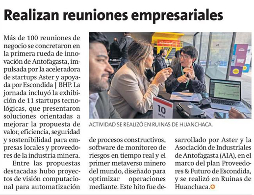 Primera Rueda de Innovación facilita más de un centenar de reuniones de negocios - (El Mercurio de Antofagasta)