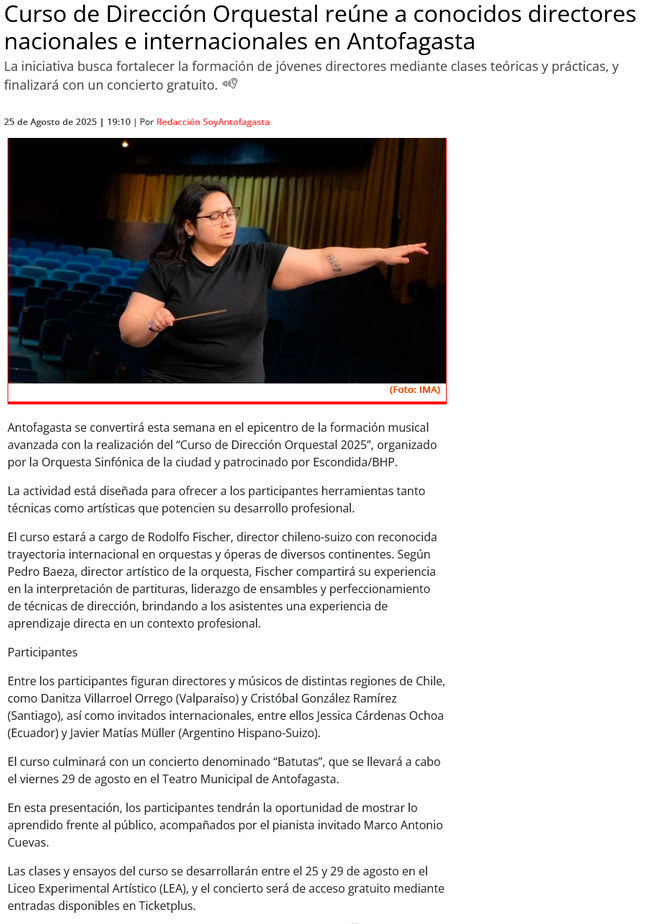 Directores nacionales e internacionales llegan a Antofagasta para Curso de Dirección Orquestal - (madero.cl)