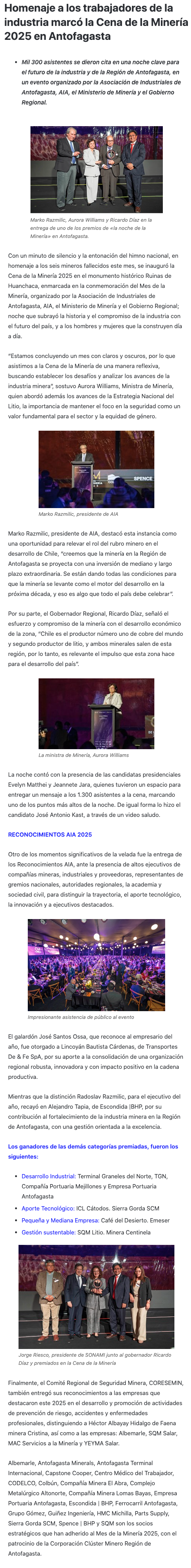 Con homenaje a los trabajadores fallecidos en “El Teniente” y la entrega de premios, Antofagasta celebró el Mes De La Minería - (revistacrisol.cl)