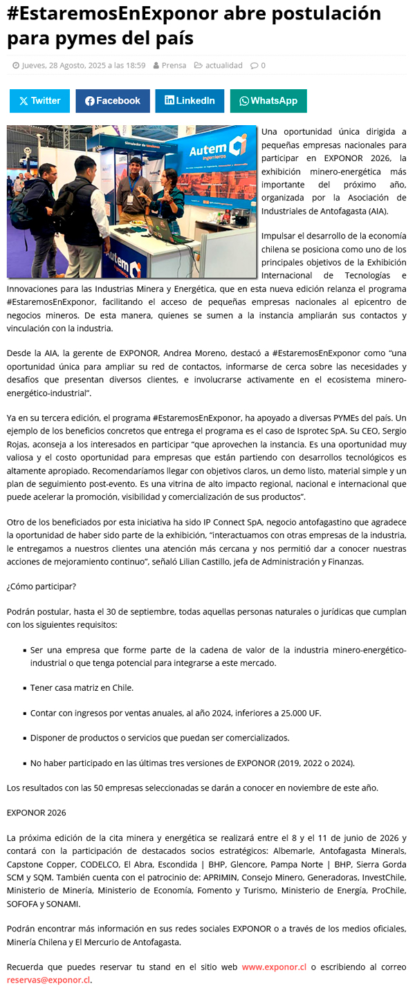 #EstaremosEnExponor abre postulación para pymes del país - (antofagastanoticias)