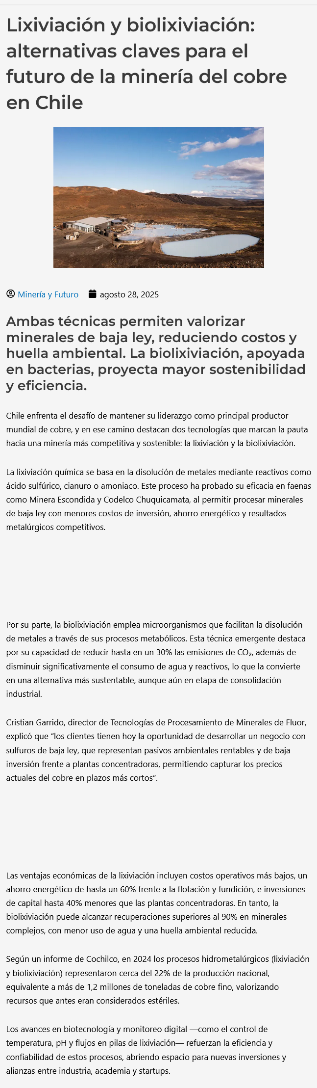 Lixiviación y biolixiviación: dos alternativas claves para el futuro de la minería de cobre en Chile - (atacamanoticias)