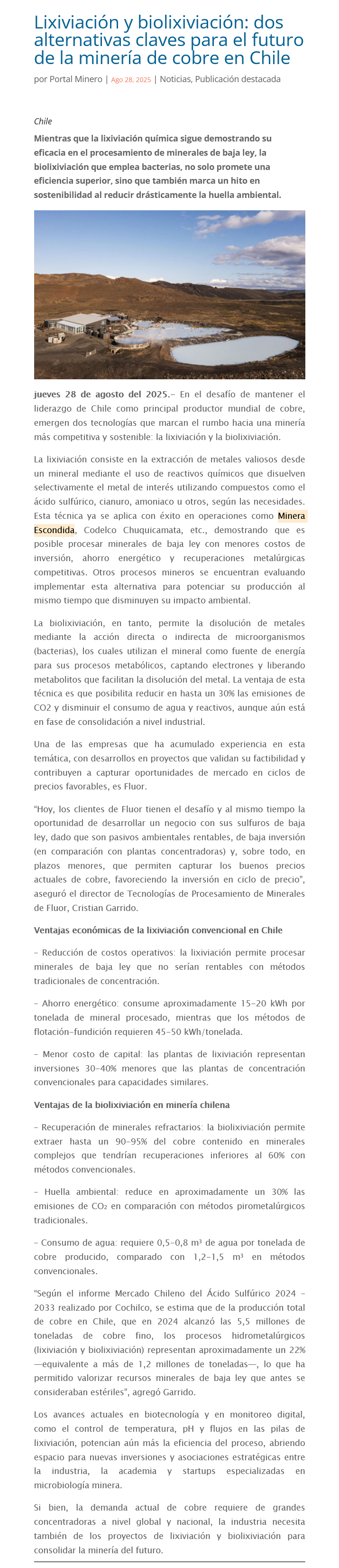 Lixiviación y biolixiviación: alternativas claves para el futuro de la minería del cobre en Chile - (mineriayfuturo.cl)
