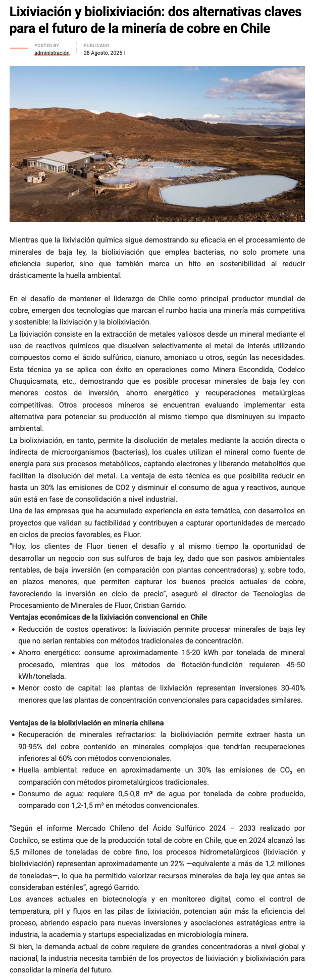 Lixiviación y biolixiviación: alternativas claves para el futuro de la minería del cobre en Chile - (mineriayfuturo.cl)