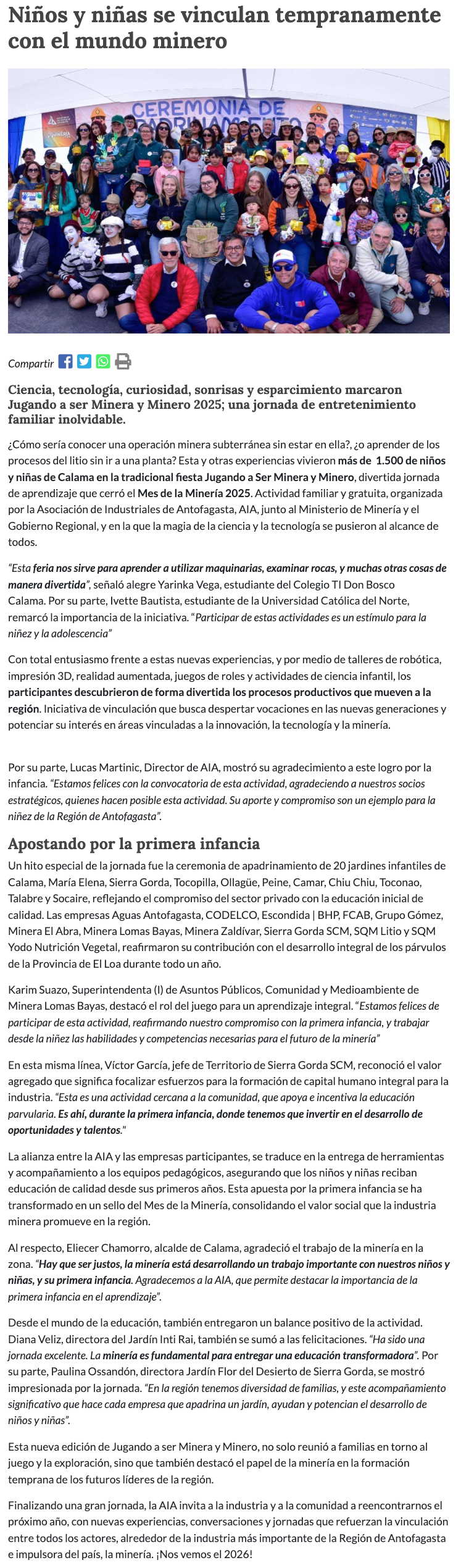 Niños y niñas se vinculan tempranamente con el mundo minero en Calama - (madero.cl)