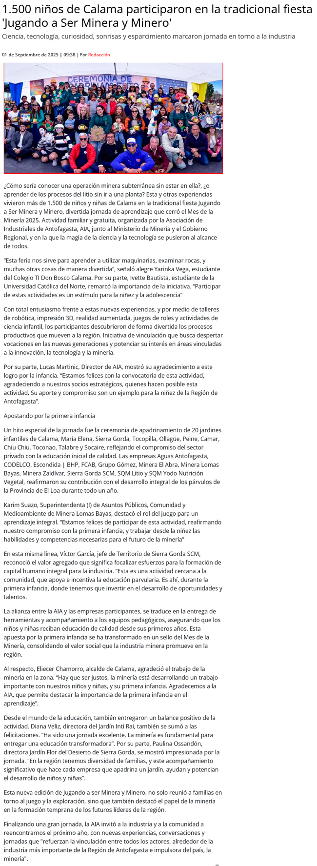 1.500 de niños y niñas de Calama en la tradicional fiesta Jugando a Ser Minera y Minero - (redloa.cl)