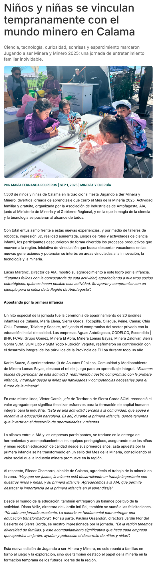 Niños y niñas se vinculan tempranamente con el mundo minero - (cualestuhuella.cl)