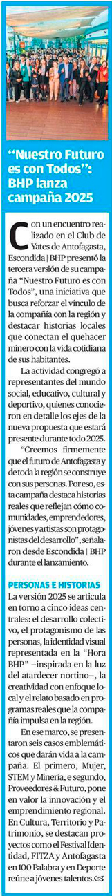 “Nuestro Futuro es con Todos”: BHP lanza campaña 2025 - (El Mercurio de Calama)