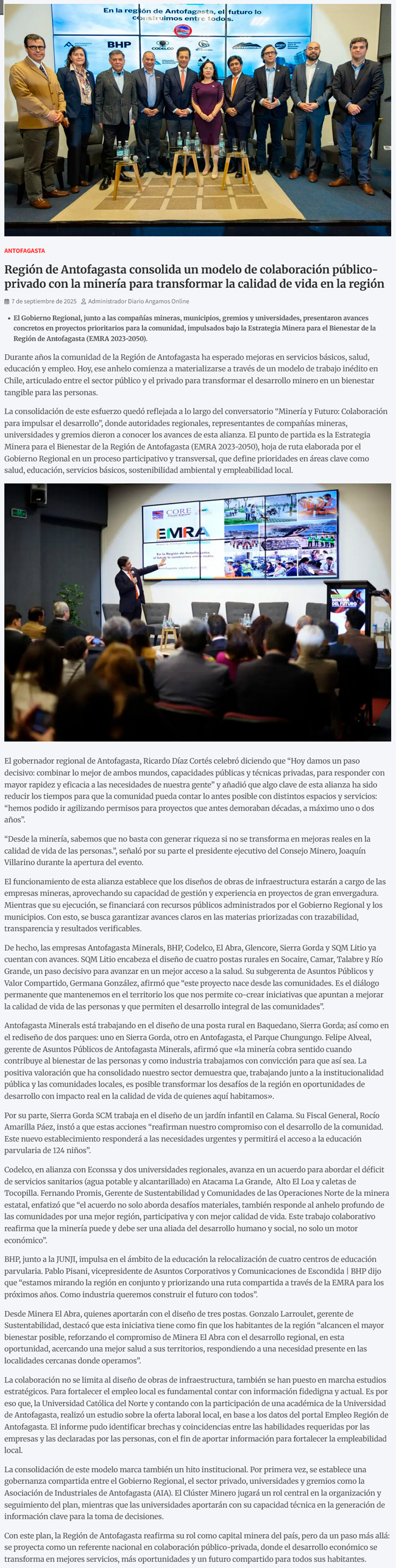Región de Antofagasta consolida un modelo de colaboración público-privado con la minería para transformar la calidad de vida en la regió - (chilemineria.cl)