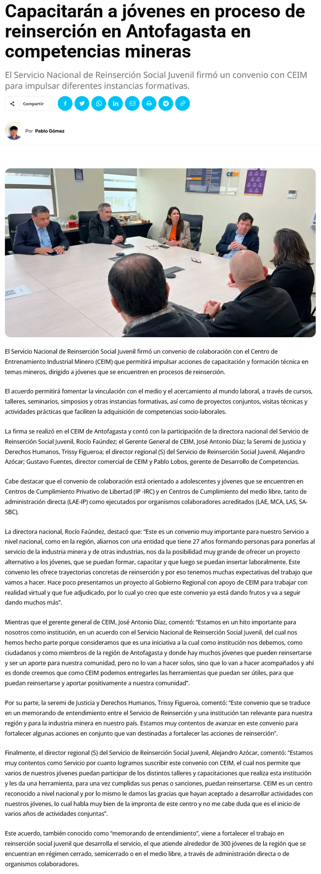 Firman convenio para capacitar a jóvenes en competencias - (El Mercurio de Antofagasta)