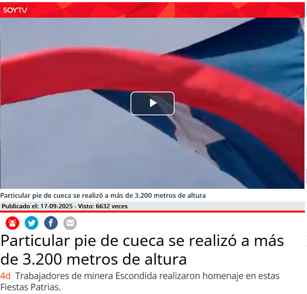 [VIDEO] Cueca en faena: trabajadores de Escondida bailaron a más de 3.200 metros de altura - (soyantofagasta)