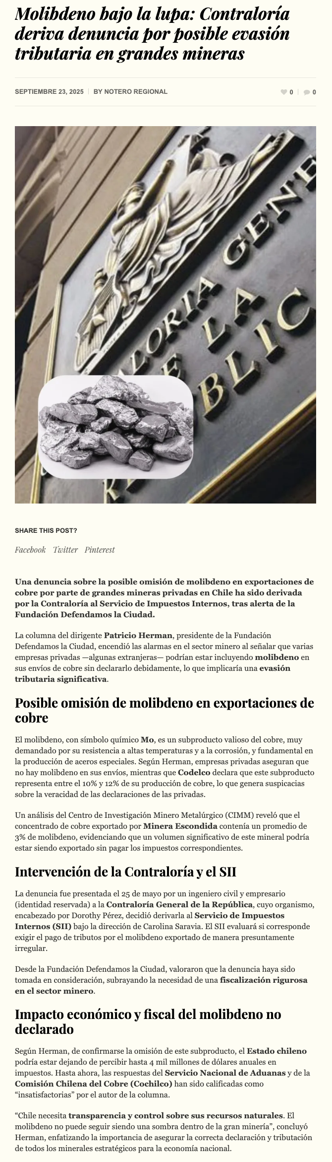 Molibdeno: Hay que seguir la pista del dinero - (norteonline.cl)