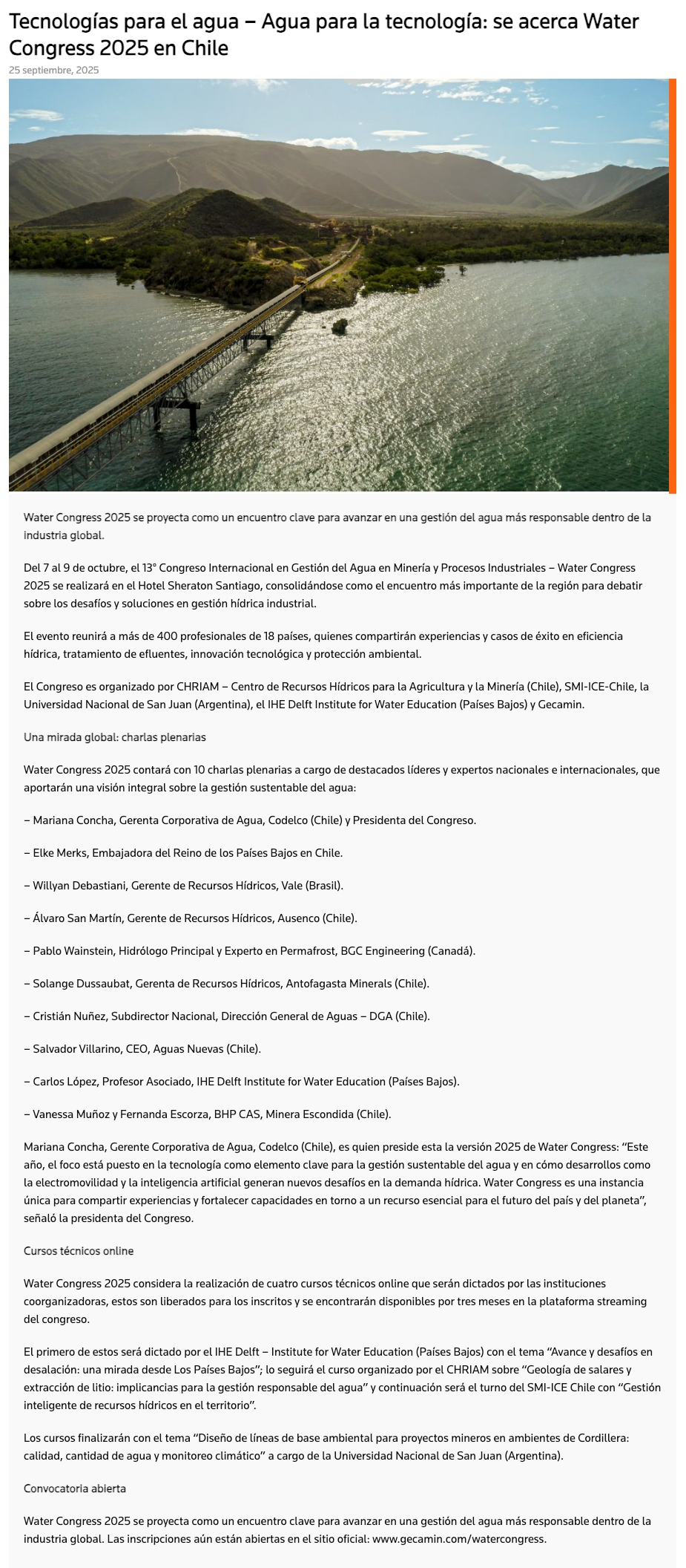 Agua para la tecnología: se acerca Water Congress 2025 en Chile - (portalminero)