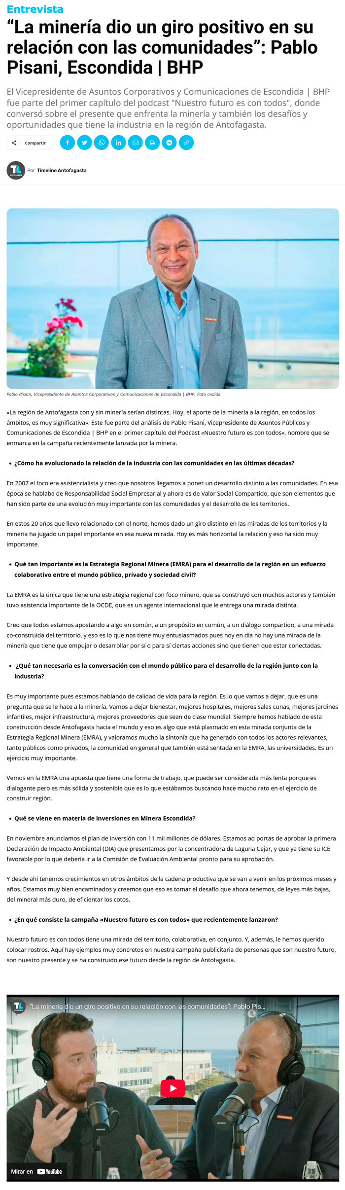 “La minería dio un giro positivo en su relación con las comunidades”: Pablo Pisani, Escondida | BHP - (redimin)